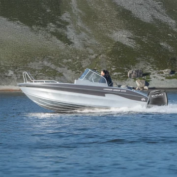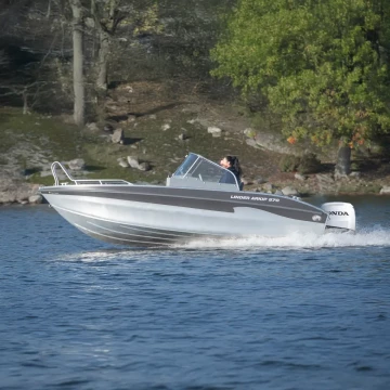 La nouveauté Arkip 570 – un bateau à moteur planant pour 6 personnes avec double coque. Nouvelle solution de console avec porte intégrée, véritables pare-brise et essuie-glaces. Un angle de carène de 16° confère au bateau un seuil de déjaugeage bas, révélant un fort potentiel de vitesse. Plateforme de baignade rehaussée avec échelle télescopique. Le pilote et le passager sont confortablement installés dans des sièges à suspension. Le cockpit a été agrandi et l’espace entre les sièges et le banc arrière a augmenté. Flottabilité intégrée dans les flancs de coque, cockpit auto-videur et, bien sûr, une coque en aluminium de 2,7 mm. Emplacement prévu pour un GPS 10 pouces. Garantie 3 ans.Réf. art. 570000.